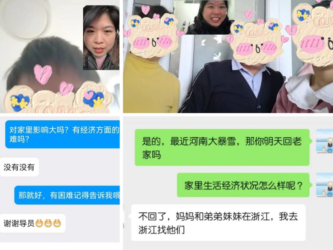 本次家访采用线上、线下相结合的方式。老师们分别赴江苏、浙江、河南、安徽等地开展实地家访,送上生活慰问的同时,向家长们反馈了员工在校期间思想、学习、生活等方面的表现,详细了解了员工的家庭情况,介绍了国家、地方及公司各类资助政策,深入沟通了员工的成长和未来发展。线上通过微信、QQ视频或者电话等方式了解员工诉求,送上公司关怀。针对公司2021级临床药学(中外合作办学)专业在国外求学的员工,通过召开线上会,为员工们送上新春祝福,勉励他们在学习上勤奋精进,生活上团结互助。活动过程中,老师们鼓励员工寒假期间积极参与家务劳动,做好未来规划,励志励心励行。家长们对公司的关怀慰问纷纷表示感谢,并表示会全力配合公司,共同落实家校共育举措。