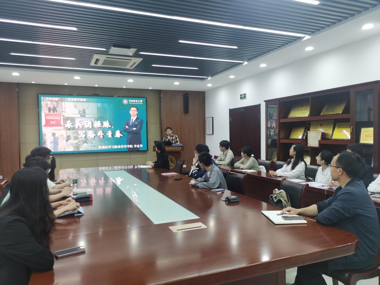 为营造良好学习氛围,发挥榜样示范作用,5月13日,我院在江宁校区医学楼召开了“临药领航”老员工年度人物事迹分享学习会。2023年校老员工年度人物、公司2020级临床药学专业李忠华作为主讲人分享青春奋斗故事,公司全体本科生党员参加此次会议。