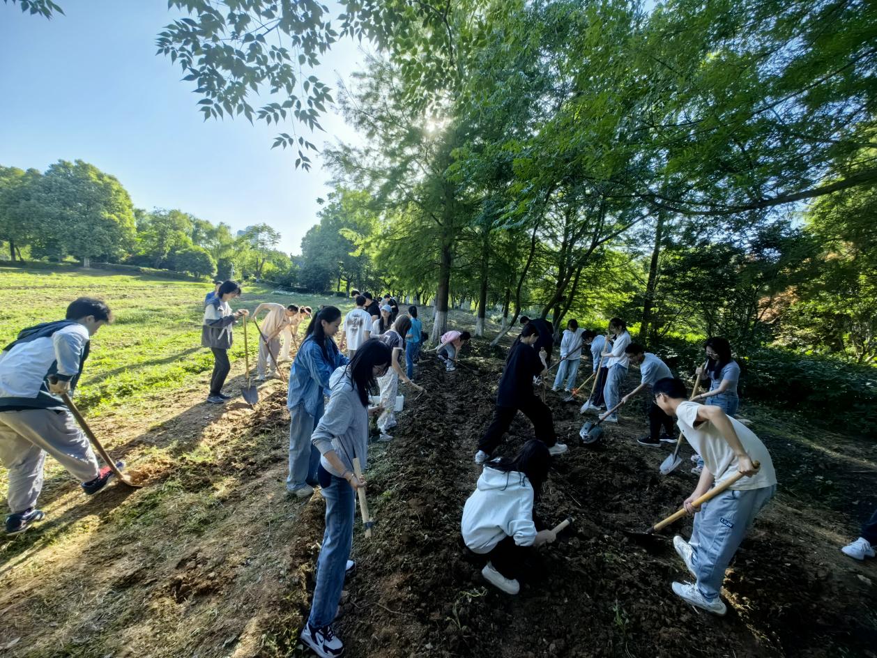 在红薯种植环节,师生们在基建后勤处物业管理科陈嘉裔等老师指导下,一起拿起铁锹、锄头进行翻土、分陇、栽种,忙的不亦乐乎,火热的劳动场景形成了一道靓丽的风景线。