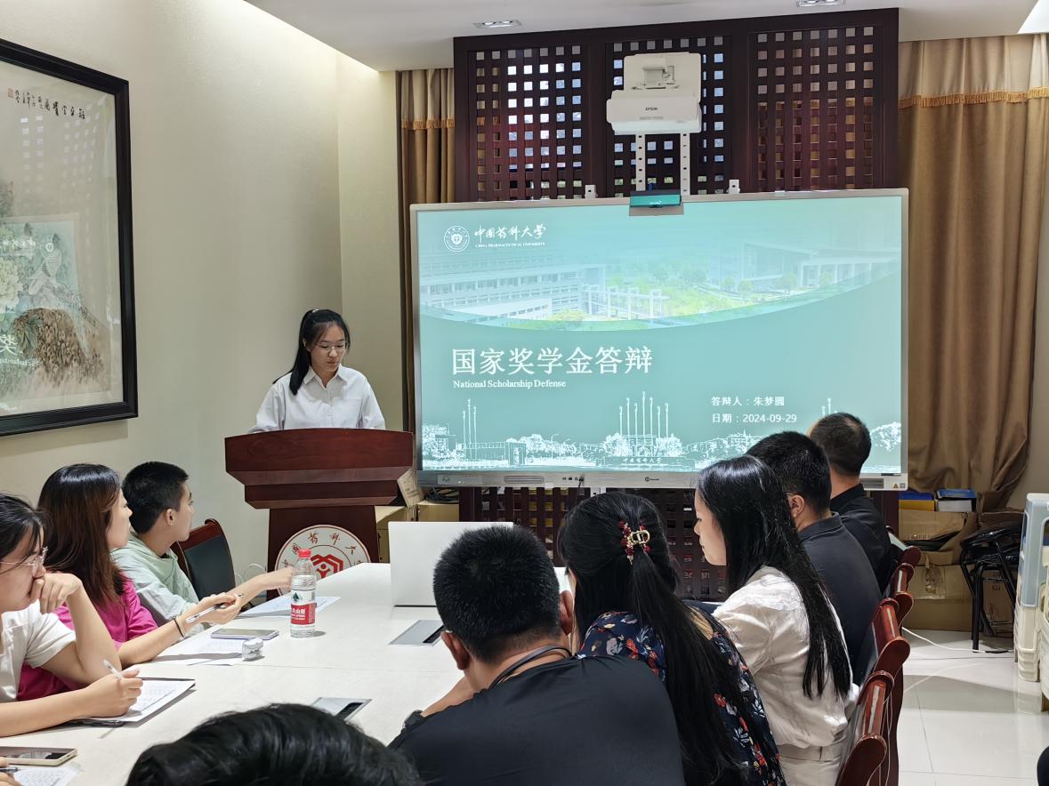 经过成绩测算、个人申报、资格审核,共有10位符合条件的同学申请此次国家奖学金。评审会上,各位候选人围绕思想引领、学业成绩、科研创新、工作任职、社会实践、志愿服务等方面对过去一年的成长收获进行总结汇报。评审小组成员对各位候选人进行现场指导和打分,最终评选出倪陈崟等5位候选人参评国家奖学金。