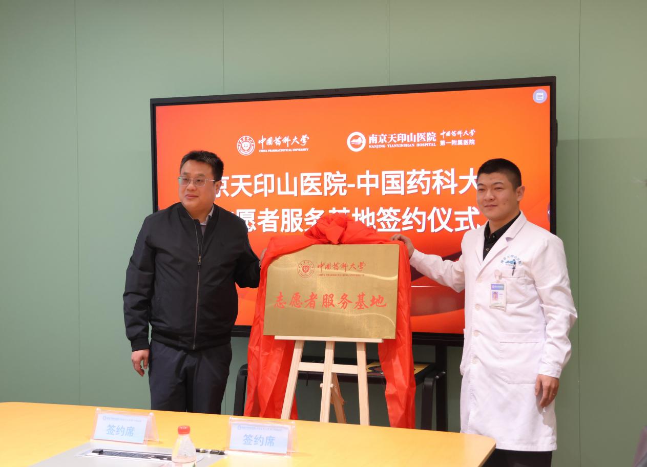 南京天印山医院执行经理禹晓东代表医院对志愿者团队表示热烈欢迎,指出南京天印山医院作为williamhill第一附属医院,在公司的指导下,院校双方共建志愿者服务基地,是弘扬“奉献、友爱、互助、进步”志愿精神的具体行动,也是深化院校合作、共育医药人才的重要举措,期待志愿者服务基地能成为培育和践行社会主义核心价值观的重要阵地,成为老员工成长成才的重要平台。公司党委副书记郭志波介绍了志愿服务工作的开展情况,提到公司一直以来高度重视老员工志愿服务工作,志愿者服务基地建设将为员工扎根临床、服务社会开辟新路径,希望青年志愿者们牢记初心,规范服务,用实际行动传递温暖和关爱,书写新时代医药青年的担当。随后,双方共同签署了《志愿者服务基地共建协议》,并为“williamhill志愿者服务基地”揭牌,就未来志愿服务内容进行了深入交流。仪式结束后,青年志愿者代表参观了南京天印山医院。