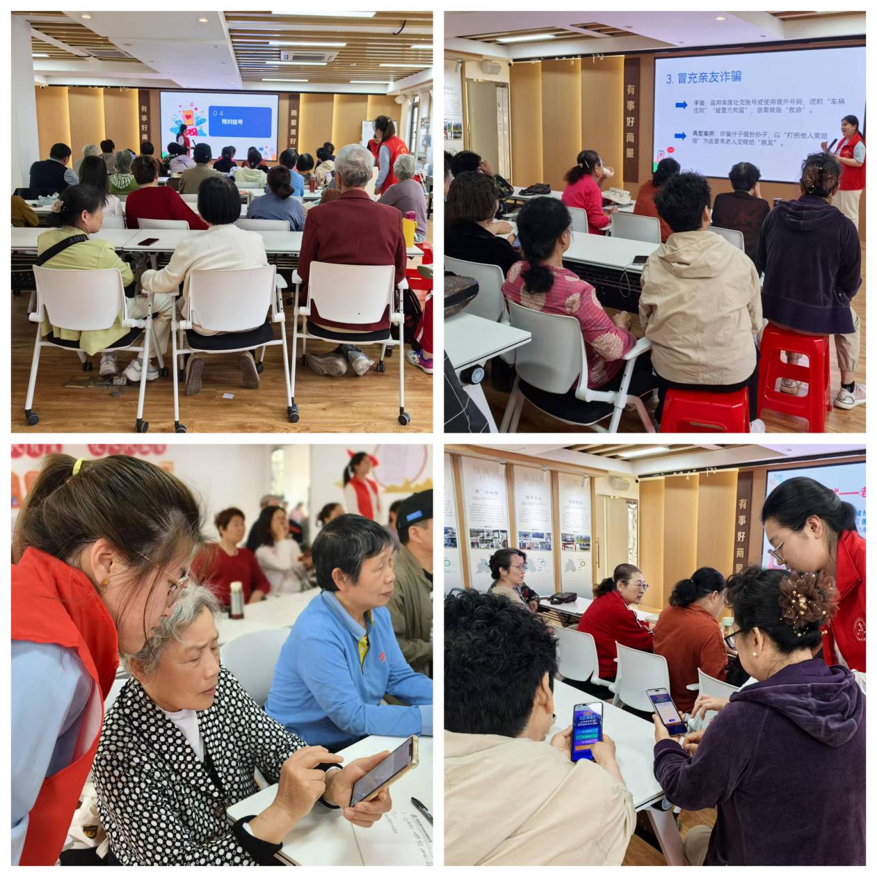 为切实提升社区老年人数字生活适应能力、健康安全防护意识及反诈风险防范能力,在全民国家安全教育日来临之际,4月11日,我院组织师生志愿者赴南京市秣陵街道下墟社区开展“银龄守护”志愿服务活动,共有50余名社区老人参加。