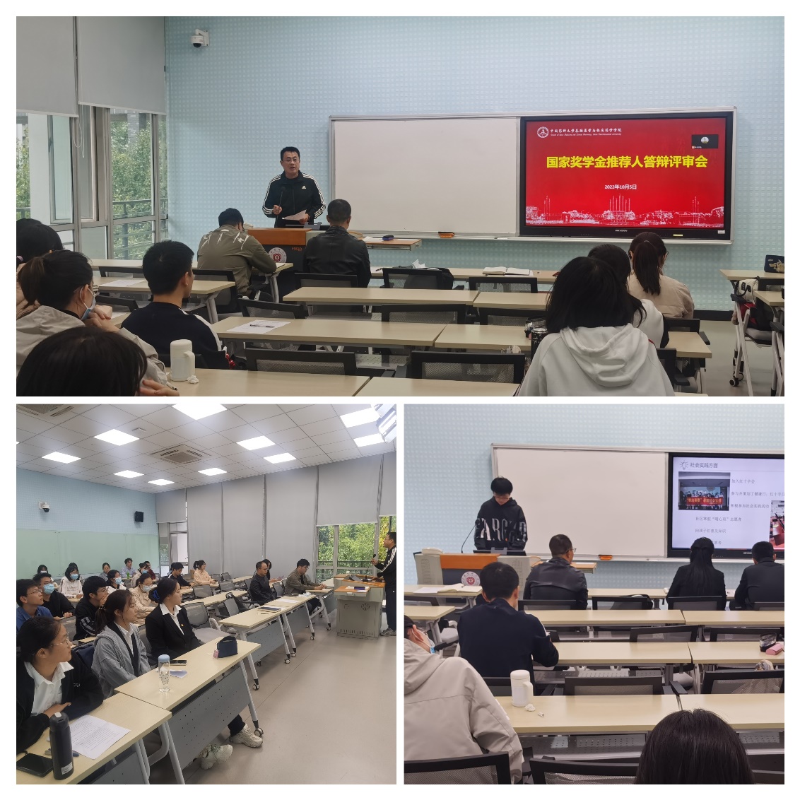 经过个人自主申报,班级推荐,年级复核,共有8名候选人通过线上或线下方式参加答辩评审。各位候选人分别围绕思想引领、社会实践、学术科研、创新创业等方面进行PPT展示汇报,讲述自身在过去一年里的成长与收获。评委根据各候选人现场表现进行点评指导和打分。