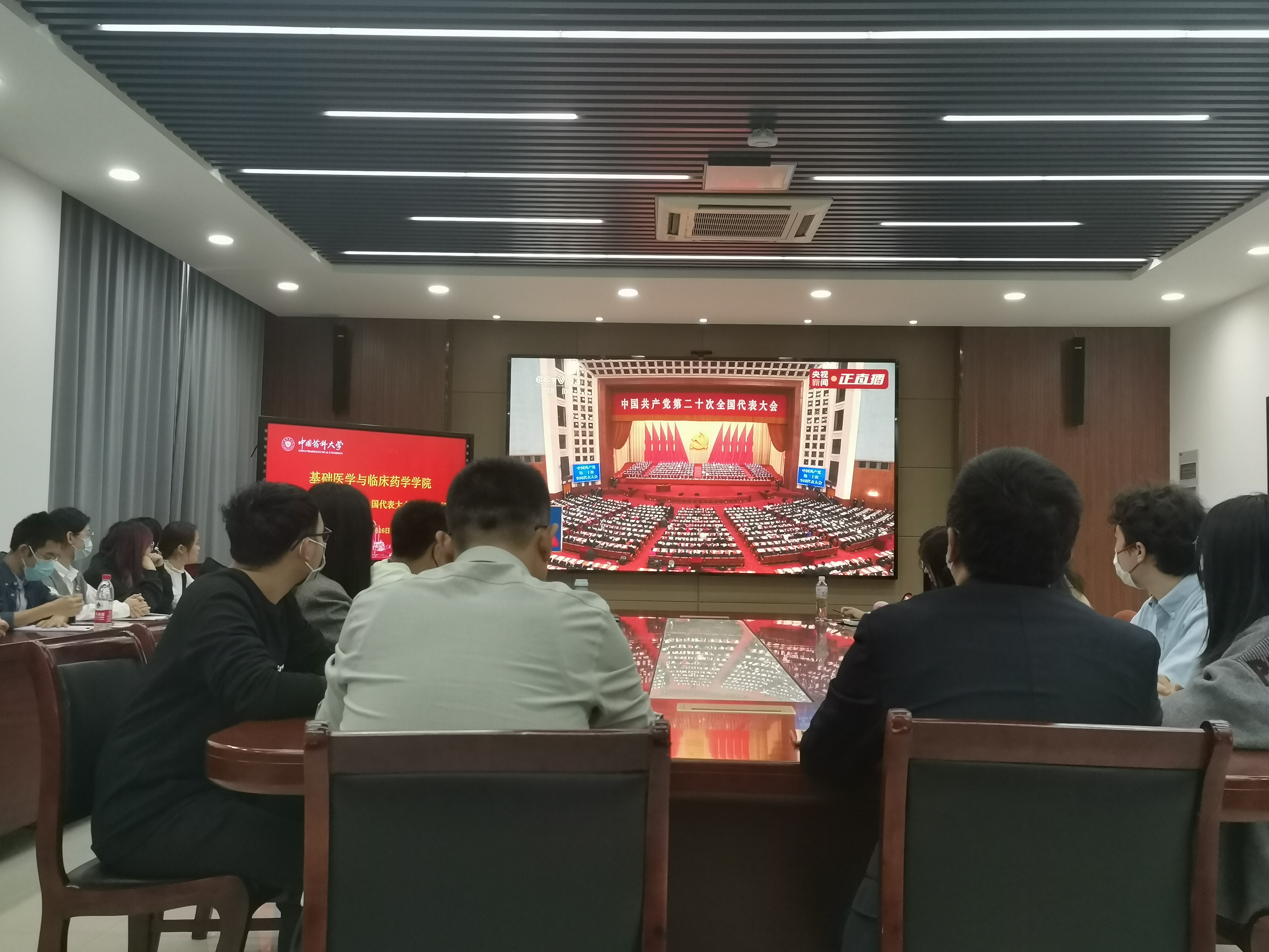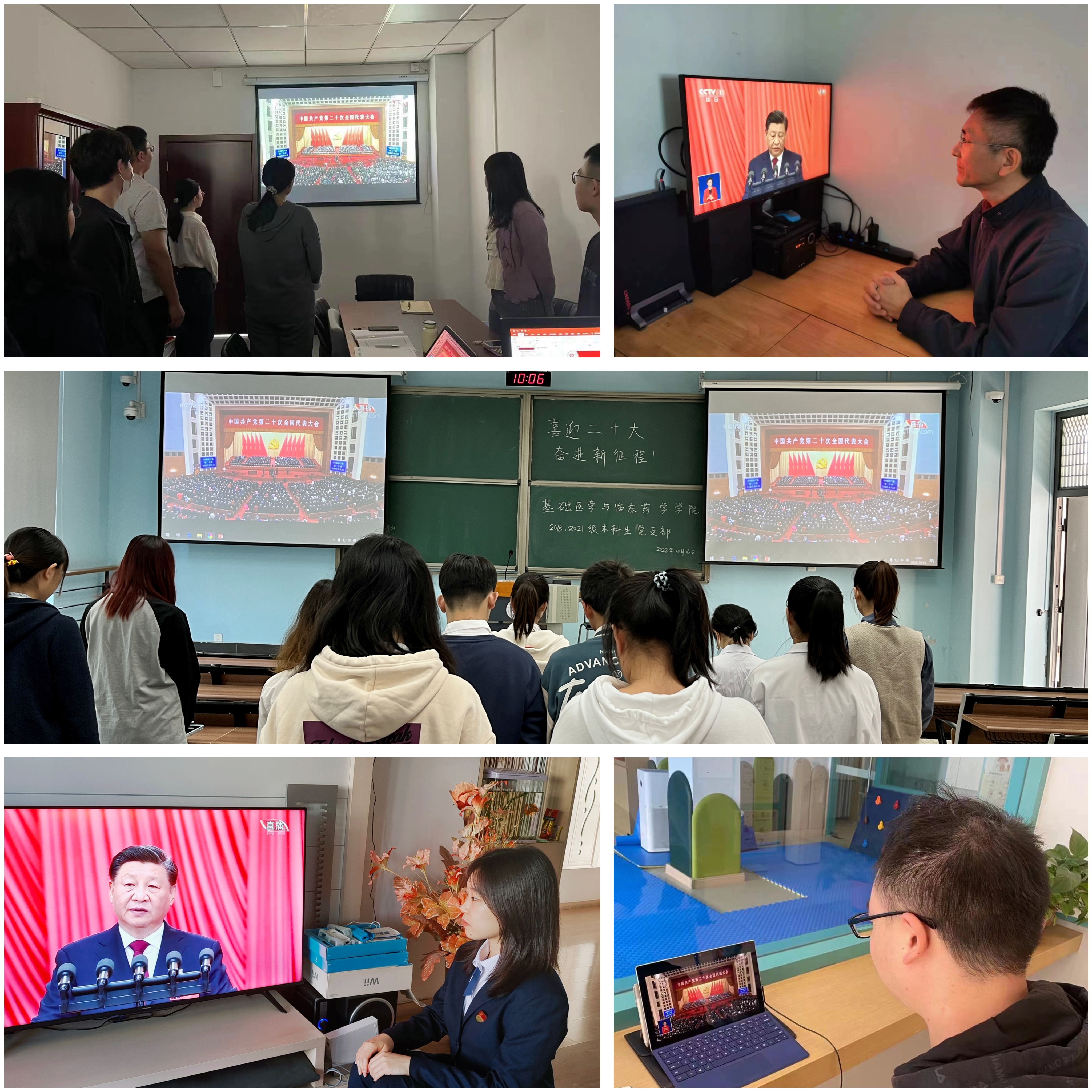 公司院领导、全体辅导员、党支部书记、团学骨干代表在医学楼102会议室集中收看中国共产党第二十次全国代表大会开幕会。师生们认真聆听习近平总书记所作的报告,深感振奋和鼓舞。