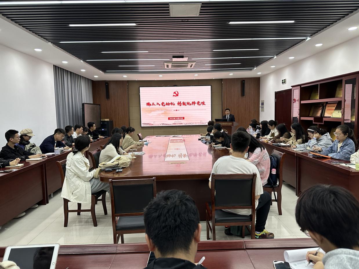 10月25日,公司在江宁校区医学楼102会议室开展2023年秋季入党积极分子培训班专题党课,公司党委书记许书宏作辅导报告。公司辅导员老师、培训班全体学员参加党课。