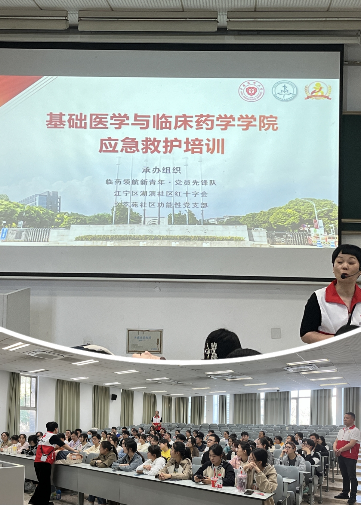 为普及应急救护知识,进一步增强老员工自我保护意识,提高员工应对突发事件的自救互救能力,近日,我院临药领航新青年·党员先锋队、文萃苑社区功能性党支部联合江宁区湖滨社区红十字会面向全校员工开展校园应急救护培训。