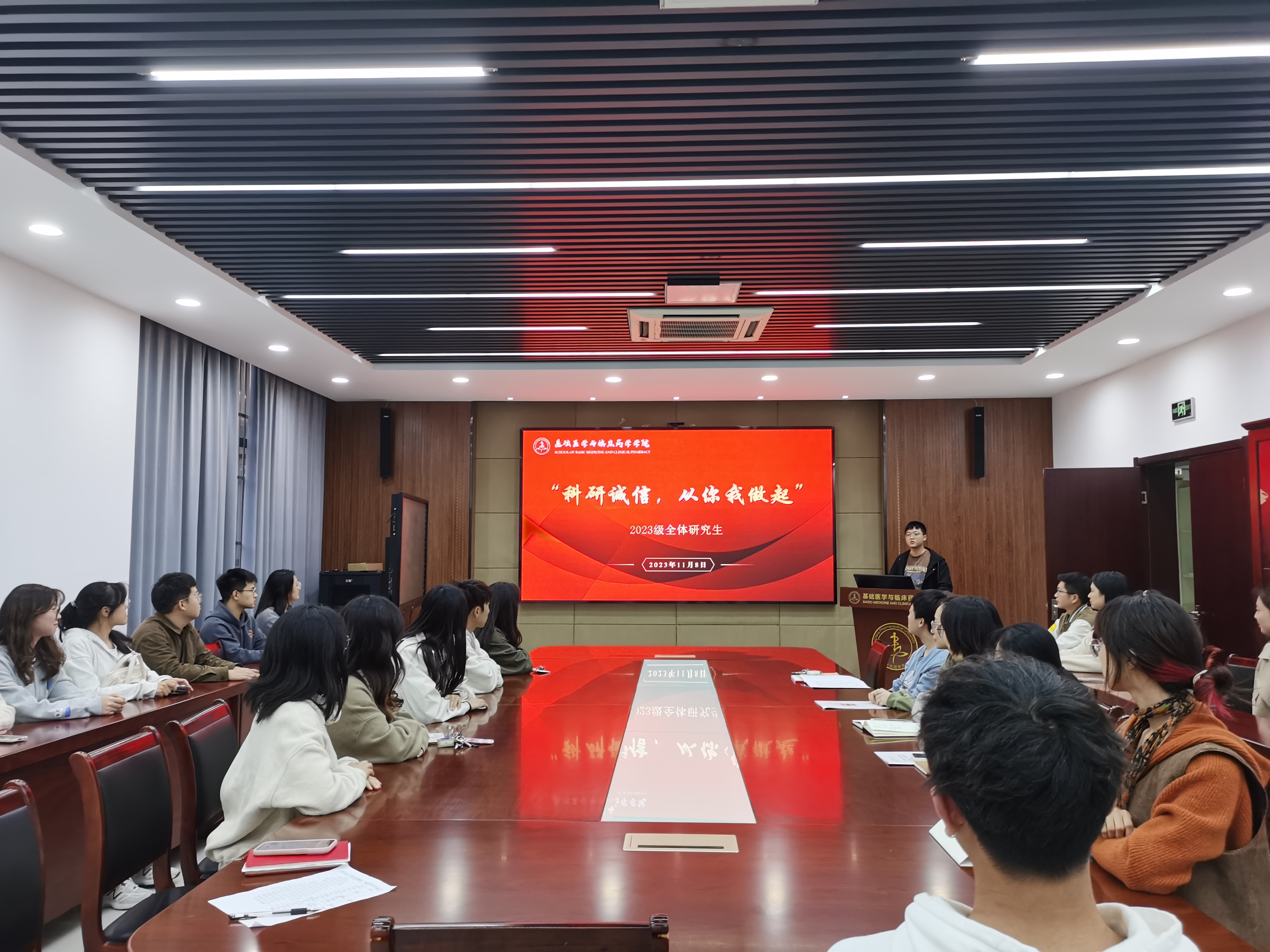 为帮助公司2023级研究生新生进一步增强科研诚信意识,不断提升公司产品质量,加强营造良好的学术环境,近日,公司在医学楼104会议室举办“科研诚信,从你我做起”主题年级大会。会议采取线上和线下相结合方式,2023级研究生新生辅导员老师和全体研究生新生参加会议。